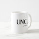 Onkel Kaffee Tasse Design mit einem traditionellen Jahr mit einem schwarz gestempelten Schriftart Set auf einem weißen Hintergrund. Klicken Sie auf anpassen, um die Hintergrundfarbe zu bearbeiten!. Besuchen Sie unseren Shop, um diese Tasse in einer großen Auswahl von Großvaternamen zu sehen.