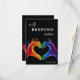 Einführung der RSVP-Karte aus der faszinierenden Sammlung "Herz des Stolzes", wo der moderne Komfort auf lebendige Feiern trifft. Im Vordergrund steht die Überschrift "UAWG Online by [date]", in der die Gäste dazu eingeladen werden, digital zu reagieren und sich zeitgemäße Kommunikationsmethoden zu eigen zu machen. Das Design zeigt das ikonische "Herz des Stolzes" - zwei Hände, die eine Herzgeste in strahlenden LGBT-Farben bilden - Set vor einem schwarzen Hintergrund, was eine kühne und aussagekräftige Aussage schafft. Die Rückseite der Karte bewahrt den schwarzen Hintergrund mit einem kleinen, aber auffälligen Detail des "Herz des Stolzes"-Kunstwerks in der unteren Ecke, wodurch eine Touch von pulsierendem Charme hinzugefügt wird. Die Gäste werden gebeten, die Hochzeitswebsite des Paares zu besuchen oder per SMS zu antworten, um eine nahtlose und bequeme Möglichkeit zu bieten, ihre Anwesenheit zu bestätigen. Eine personalisierte Botschaft lädt herzlich ein, an der Feier teilzunehmen und dankt für ihre Reaktion. Am Ende der Karte werden die Namen der Paare elegant angezeigt, was der Ästhetik eine personalisierte Touch verleiht. Die vertikale Ausrichtung und das dynamische Design der RSVP-Karte machen sie zu einem herausragenden Stück in der Hochzeitsaufstellungssuite. Die RSVP-Karte "Herz des Stolzes" verbindet den modernen Komfort nahtlos mit dem lebendigen Geist der Liebe und Inklusivität. Als Teil einer koordinierten Sammlung, die Termine, Einladungen, Menükarten, Platzkarten und Dankeschön-Noten umfasst, trägt diese RSVP-Karte zu einem zusammenhängenden und visuell auffälligen Thema während der Hochzeitsfeier bei, das die Gäste in die fröhliche und inklusive Vision des Paares eintaucht.