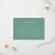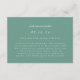 Mit dieser einfachen und klassischen, textbasierten Antwortkarte für Hochzeitsgäste in aquamarinem Blau können Sie sich von dezenter Eleganz überzeugen. Verwenden Sie die Anpassungsoption, um alle Farben zu ändern, um Ihr Hochzeitstil Anzug. Personalisieren Sie den gesamten Text dieser Online-UAWG Insert-Karte und leiten Sie Ihren Gast zu Ihrer Hochzeitswebsite für zusätzliche Informationen, während Sie einige Bäume und Geld bei der Rückkehr Porto gerettet.