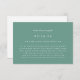 Mit dieser einfachen und klassischen, textbasierten Antwortkarte für Hochzeitsgäste in aquamarinem Blau können Sie sich von dezenter Eleganz überzeugen. Verwenden Sie die Anpassungsoption, um alle Farben zu ändern, um Ihr Hochzeitstil Anzug. Personalisieren Sie den gesamten Text dieser Online-UAWG Insert-Karte und leiten Sie Ihren Gast zu Ihrer Hochzeitswebsite für zusätzliche Informationen, während Sie einige Bäume und Geld bei der Rückkehr Porto gerettet.