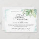 Laden Sie Freunde und Familie ein, um Ihre intime "virtuelle/online" Hochzeit mit dieser eleganten Einladung zu verbinden. Herrliche "Virtuelle Hochzeit" Phrase in modernem Block und handgeschriebener Kalligrafie. Exquisite, handbemalte Vegetation umrahmt Ihre Details mit blass türkisfarbenem Blattwerk, staubblauen und grünen Farbtönen. Weiche Aquarellfärbungen in hellblauen und grünen Farbtönen. Phrase oben: "Nichts extravagant, aber voller Liebe kann auf jede andere Phrase geändert werden, die Sie mögen oder sogar löschen. Fügen Sie Ihre Nachricht, Datum, Uhrzeit und Ihre virtuelle Adresse hinzu, damit jeder an der Feier teilnehmen kann! Zurück mit stylischem Logo mit Braut- und Zierstühlen mit vollen Namen und Details zur grünen Ecke. Modernes, romantisches elegantes Ambiente. Teil unserer Hochzeitssuite "Airy Blue and Green Watercolor".