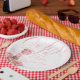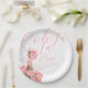 Ooh La Paris Brautparty Teller mit rosa Blumen und eiffelfarbenen Turm und kalligraphischen Schriftzeichen.