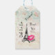 Vielen Dank an Geschenketiketten mit einem schönen Vintagen Muster Hintergrund mit schwachen Rose und anderen dekorativen Elementen. Obergeschichtet ist eine Illustration des Eiffelturms und Ooh La, seitwärts geschrieben. Ein heißrosa Lippenstift Eindruck links neben der berühmten Sehenswürdigkeit mit dem Text xoxo! Bonjour geschrieben in einem Pariser Schriftart, der angepasst werden kann / geändert werden, um Ihre Bedürfnisse Anzug.