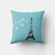 Der Eiffelturm, der von schönen, funkelnden, bunten Lichtern bedeckt ist, und das spielerische und lustige Sprichwort Oooh la!, dekorieren dieses türkisfarbene, türkisfarbene Kissen, das sich perfekt für das gemütliche Zimmer mit inspiriert Dekoration in Paris eignet.