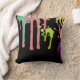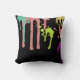 Schwarzes Kissen mit mehrfachen Farbensplotches und -Tropfen auf Front und Rückseite