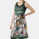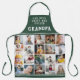 Schürze für Opa in Jäger grün und weiß mit einer Foto-Collage mit zwanzig quadratischen Fotos. Auf grünem Hintergrund werden die besten Köche als Großvater geschrieben, aber der Text kann angepasst werden, falls Sie ihn gewollt haben.