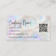 Erzeugen Sie einen atemberaubenden Eindruck mit dieser schimmernden Opal-Visitenkarte, die eine weiche, irisierende Textur und einen eleganten, handgeschriebenen Namenszug aufweist. Das Design verfügt über einen simulierten Opal-Effekt (kein echter Opal), der entwickelt wurde, um einen leuchtenden, pastellfarbenen Schimmer zu erzeugen, der luxuriös und modern wirkt. Für die besten Druckergebnisse empfehlen wir, eine hellere Papieroption zu wählen, da diese die Klarheit und Helligkeit der Opal-Details verbessert.
