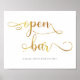 "Open Bar" Gold Drinks Hochzeitszeichen Poster