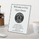 Dieses minimalistisch gestaltete und offene Haus-Begrüßungsschild ist mit dem Logo Ihres Immobilienunternehmens in der Mitte personalisiert. Fügen Sie auf diesem modernen Schild Ihren richtigen Firmennamen und Agent für das Anwesen hinzu, um das Marketing für Zuhause-Kunden in einem offenen Haus zu erweitern.