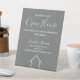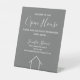 Dieses moderne graue und weiße Open House Schild ist nach Ihren Wünschen mit Ihrem Firmennamen und den Kontaktdaten Ihres Immobilienmaklers gefertigt. Beeindrucken Sie neue Zuhause, die Kunden mit dieser schicken, einfachen Beschilderung mit diesem klassischen Typografiezeichen kaufen. Eine minimalistisch graue Linie, die von einem Haus zeichne, befindet sich unter den realen Anwesen Agent Informationen.