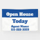 Dieses echte Anwesen-Open House-Banner hat einen Ausstellungstext mit dem Titel "Open House Today", aber Sie können den Wortlaut nach Bedarf ändern. Am unteren Ende gibt es einen Ort, um den Namen und die Telefonnummer des echten Agenten des Anwesens hinzuzufügen. Der obere Teil ist blau. Die Erholung des Banners ist weiß. Alle Texte können bearbeitet oder gelöscht werden.