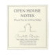 The notepad features a clear “Open House Notes” cover design with a welcoming message, making it ideal for home buyers to jot down ideas, favorites, and questions during the showing. The minimalist layout keeps the focus on usability while reinforcing your personal brand.
