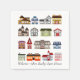Diese Papierservietten verfügen über ein Vektorbild einer Gruppe verschiedener Häusertypen, mit dem anpassbaren Text Welcome~Open House. Ideal für ein offenes Haus einer Immobiliengruppe!