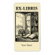 This graphic was derived from an antique Ex Libris bookplate etching featuring an open library window with a vase with flowers, a desk with an open book, and book shelves full of books. You can easily personalize the text and customize the background color with this template.