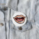 Pin your passion for vocal art with this open mouth cartoon graphic button. This small accessory features the bold illustration of stylized lips, teeth, and tongue, making it a perfect, portable design element for jackets, backpacks, or lanyards. The crisp vector drawing of this funny talking human expression design is a great way to add a unique, personalized touch. Collect this affordable piece of expressive artwork and show off your style.