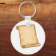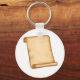 Dieses Design ist eine offene Schriftrolle von der Art, die man in mittelalterlichen Tagen gehabt hätte. Die offene Schriftrolle hat nichts darauf geschrieben. Dieses offene Scrolldesign sieht auf diesem Schlüsselanhänger großartig aus