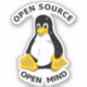 Open Source Open Mind Text mit Tux Pinguin in der Mitte.