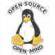 Open Source Open Mind Text mit Tux Pinguin in der Mitte.