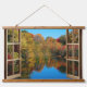 Open Window Autumn Lakeside Wandteppich Mit Holzrahmen
