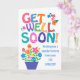 Eine helle und fröhliche Get Well-bald aus der Operation Auge Grußkarte mit farbigen, gemusterten Buchstaben und Blume. Es gibt Polka-Punkte, Chevrons und Streifen in der 'Get Well bald'-Schrift und 'Eine schnelle Erholung von Ihrer EYE-OPERATION wünschen ist in blau. Gerne können Sie die Insider-Nachricht personalisieren, wenn Sie möchten.