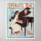 Vintages Titelblatt für das Lied "Operatic Rag", das eine Frau in weißem Kleid und einen großen schwarz-weißen Hut zeigt, der ein großes Klavier spielt.