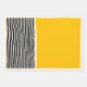 Abstrakte Kunst mit einer optischen Täuschung wirkt mit fett-gelben Block, schwarzen gewellten Linien und einem beigen Rand.
