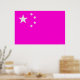 Senario: "Eine Alien, die auf diesem Planeten gelandet ist, kann die Farbtöne nur als verschiedene Rosatöne sehen. Sie entdeckt eine neue Farbe, indem sie die Flaggen verschiedener Länder beobachtet, nämlich die grüne Farbe. Sie weiß sofort, dass dies ein Schild von ihrem Planeten ist, das ihr zeigt, was ihre Mission auf dem Planeten Erde ist. Die Botschaft lautete: " Alle Flaggen in Grün verwandeln und sie dann ganz loswerden " ..." Optische Illusion: Es gibt keine grüne Farbe in dieser Flagge. Der Betrachter sollte zuerst die Vergrößerung verwenden (ein größeres Bild anzeigen). Um nun die Sterne in der Flagge in eine hellgrüne Farbe zu verwandeln, sollte der Betrachter die Sterne vollständig ignorieren und eine Weile die rechte Seite des Bildes sehen, wobei er auf 50 (nur als Beispiel) zählt. Wenn man sich nun das ganze Bild anschaut, werden die Sterne in leuchtend grün. Je länger die Beobachtung, desto tiefer die grüne Farbe.
