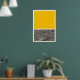 Abstrakte Kunst mit einer optischen Täuschung wirkt mit fett-gelben Block, schwarzen gewellten Linien und einem beigen Rand.