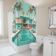 Erleben Sie den Luxus des Duschvorhangs "Opulent Mid-Century Modern Poolside", ein herausragendes Stück aus der Sammlung "Posh Pools" von H2OArt von AlexSandra. Dieses Design verfügt über eine zweistöckige Zuhause mit aquamarinen Wänden und pfirsichweißen Akzenten, die die moderne Architektur des 20. Jahrhunderts veranschaulicht. Der Balkon bietet einen Blick auf den atemberaubenden Pool, der von Palmen und Palmen im klaren türkisfarbenen Wasser geprägt ist. Aquamarine Liegestühle tragen zur Ruhe bei, während sanfte Hügel im Hintergrund die malerische Landschaft vervollständigen. Dieser Duschvorhang eignet sich ideal für alle, die Eleganz und Ruhe in ihrem Badezimmer schätzen.