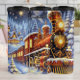 This magnificent artwork showcases an opulent red and gold Christmas train, exquisitely detailed, journeying through a twinkling snow-covered village. Illuminated passenger cars glow warmly as flakes fall under a guiding star. This grand scene beautifully captures the luxurious magic and festive splendor of a truly extraordinary holiday voyage, perfect for seasonal display.