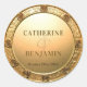 Mit diesem opulenten Rundaufkleber, der eine dreidimensionale Grenze aus geschnitzten goldenen Rose und Blätter aufweist, verweilen Sie Ihren besonderen Tag. Das klassische Goldfinish bietet eine wunderschöne Leinwand für das maßgeschneiderte Drehbuch und zeigt elegant die Namen des Paares und das Hochzeitstag. Dieser Aufkleber fügt Ihren Einladungen, Favoriten oder Umschlägen eine Touch zeitlosen Stils hinzu.