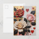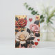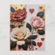 Ein reich strukturiertes und symbolisches Gemälde mit drei großen Rose in tiefroten, sanften Rosa- und cremefarbenen Tönen mit jeweils feinen, dicken Blättern. Die Rose sind von dramatischen dunklen Blätter mit goldenen Adern umgeben. Der Hintergrund ist in drei vertikale Paneele unterteilt: eine ist ein strukturiertes, schimmerndes Gold, die andere ist ein reines, texturiertes Weiß und die letzte ein vertikales Streifen aus texturiertem Weiß und Blassrosa. Die gesamte Komposition ist mit kleinen, glänzenden roten Herzen, die überall verstreut sind, betont. Die Kunstwerke sind luxuriös und dekadent und verbinden natürliche Elemente mit einem kühnen, grafischen und symbolischen Design.