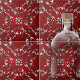 Diese Keramik Kachel ist eine schöne Mischung aus Eleganz und Komplexität. Es zeichnet sich durch einen reichen, lebendigen roten Hintergrund aus, der als Leinwand für die aufwändigen silbernen Muster dient, die es schmücken. Diese Muster sind symmetrisch und verwirren anmutig über die Kachel, wodurch ein harmonischer Tanz von Formen entsteht, die sich in Richtung Mitte annähern. Im Zentrum der Kachel befindet sich ein strahlender roter Edelstein, der als Brennpunkt dient und das Auge zeichne. Die silbernen Wirbel sind mit Edelsteinen dekoriert und fügen der Ästhetik eine Touch von Luxus und Mystik hinzu. Die aufwändigen Details und opulenten Designelemente erinnern an klassische Viktorianische Designs, die für ihre Eleganz und Pracht bekannt sind. Diese Keramik Kachel, mit ihrem aufwändigen Design und der luxuriösen Ästhetik, würde jedem Raum Charakter und Eleganz verleihen. Es ist ein perfektes Stück für diejenigen, die die Eleganz Viktorianischen Designs und die Schönheit der komplexen Muster schätzen.