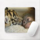 Niedlicher Orang-Utan und Tiger CUB CUB, das zusammen streichelt. Völlig kundengerecht.