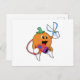 Orange als Friseur mit Schere & Haartrockner Postkarte