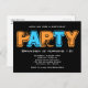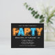 Diese moderne Geburtstagsfeier ist eine Postkarteneinladung für Jugendliche und Jugendliche. Schwarz, Orange und Blau. Ein lustiges Design für ein cooles Skater Party!