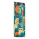 Orange and teal geometric abstract thermal tumbler.