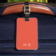 This modern luggage tag design features a Orange background, with your initials in bold white text for a look that is simple and stylish, yet professional.