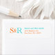Orange Aqua Two Monogram Rücksendeadressen-Aufkleb