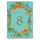 Orange & Aquamarin Aqua Peony & Rose Blumenzehen Tischnummer