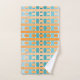 Dieses Handtuchhandtuch Set hat ein orange-aquamarines kariert auf einem weißen Feld.