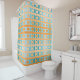 Dieser Duschvorhang hat einen orange-aquamarinen karierte auf einem weißen Feld.