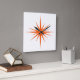 Die moderne Viereckuhr aus der Mitte des Jahrhunderts besticht durch eine kühne orangefarbene Sternexplosion, die eine fantastische Ergänzung zu den Wänden Ihrer Zuhause oder Ihres Büros darstellt!