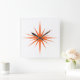 Orange Atomic Sternexplosion Mitte Jahrhundert Mod Quadratische Wanduhr