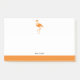 Orange auf weißem Flamingo und Grenze mit dem Name Post-it Klebezettel