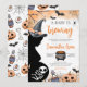Feiern Sie Halloween mit unserer Orange "Baby ist Brewing" Halloween Baby Shower Einladung! Dieses bezaubernde Design zeigt eine skurrile Abbildung einer schwangeren Hexe mit einem niedlichen Babyskelett, das aus ihrem Bauch herausguckt. Umgeben von Halloween-Elementen wie einem Kessel, einem spitzigen Kürbis, einer Giftflasche, einem unheimlichen Augapfel, flatternden Fledermäusen und einer gruseligen Spinne in seinem Netz, Set diese Einladung den perfekten Ton für eine spoktaculäre Feier. Lassen Sie Ihre Gäste mit dieser magischen Einladung verzaubern! BBS798