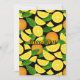 Orangefarbene Scheiben und Blätter. Nahtloses Muster. Benutzerdefinierte Hintergrundfarbe. Benutzerdefinierter Text auf jeder Seite.