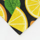 Orangefarbene Scheiben und Blätter. Nahtloses Muster. Benutzerdefinierte Hintergrundfarbe. Eigener Text.