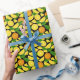 Orangefarbene Scheiben und Blätter. Nahtloses Muster. Benutzerdefinierte Hintergrundfarbe.