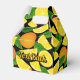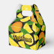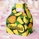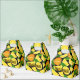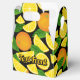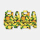Orangefarbene Scheiben und Blätter. Nahtloses Muster. Benutzerdefinierte Hintergrundfarbe. Benutzerdefinierter Text auf beiden Seiten.